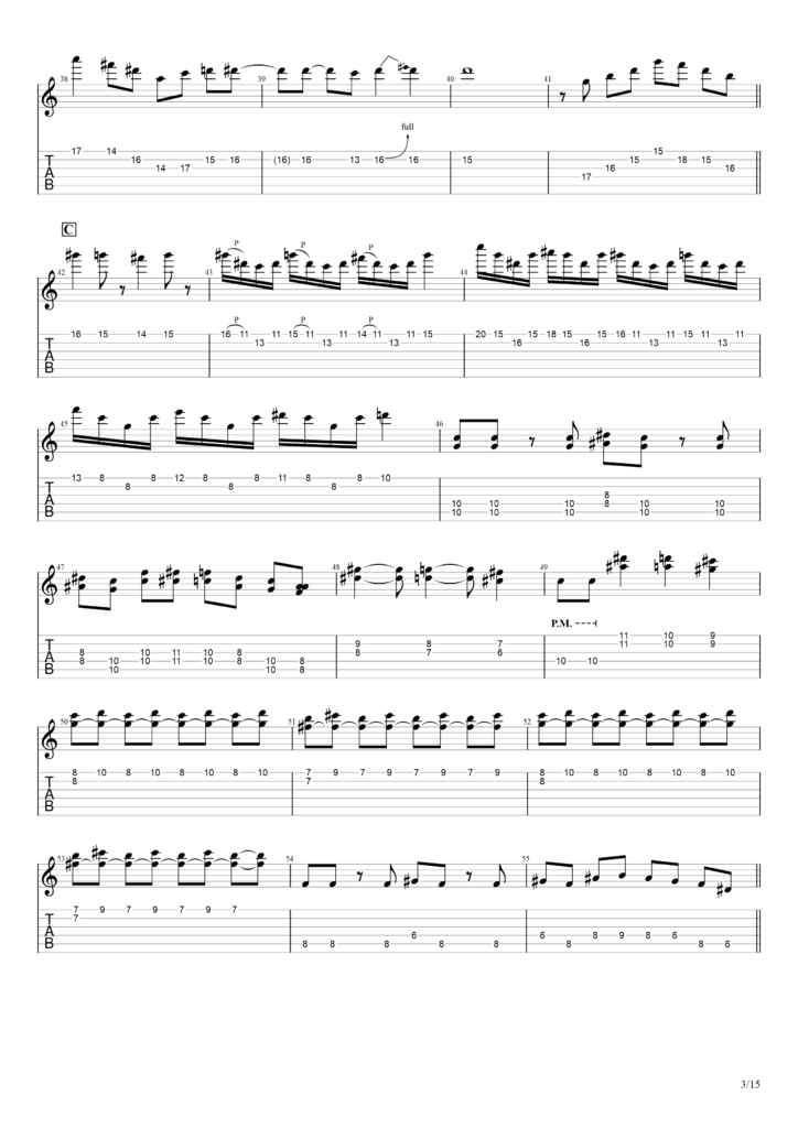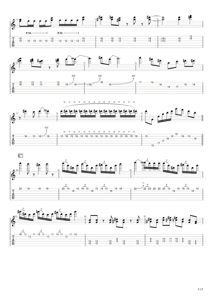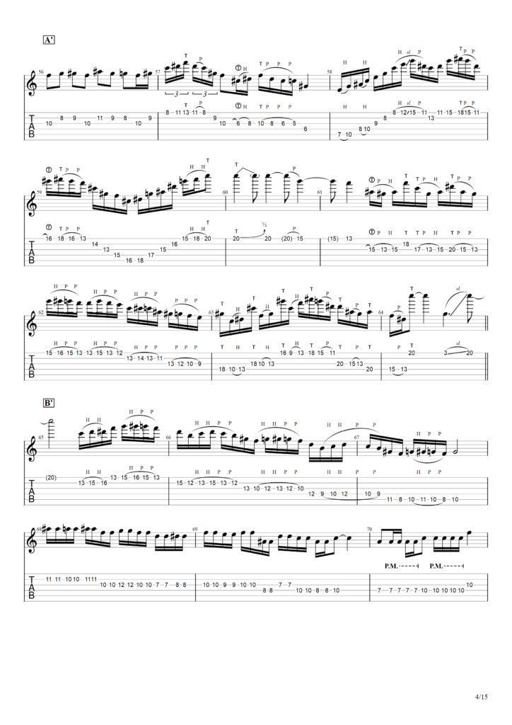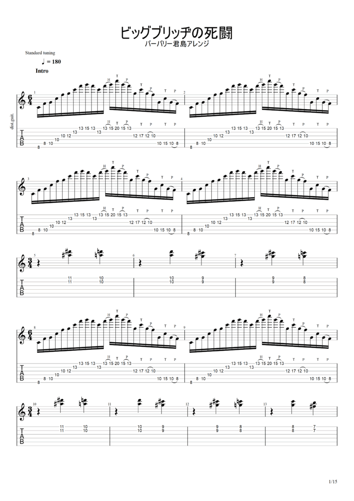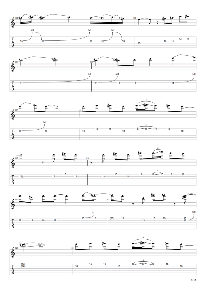 以下この演奏をもとに筆者が作成したTAB譜になります。