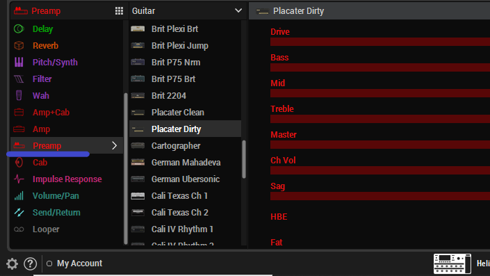 さらに、アンプのプリアンプ段階のトーンのみを提供する、各Ampモデルのプリアンプ・バージョンの